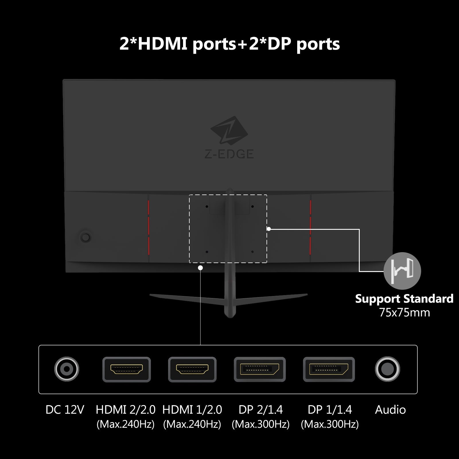 Equipped with dual HDMI and dual DisplayPort inputs. this monitor offers maximum connectivity options for multiple gaming systems and peripherals. AMD FreeSync technology (via DisplayPort) ensures seamlessly smooth. tear-free gameplay. The 100×100mm VESA mount compatibility provides enhanced flexibility for professional gaming setups. allowing for ergonomic positioning and multi-monitor configurations.