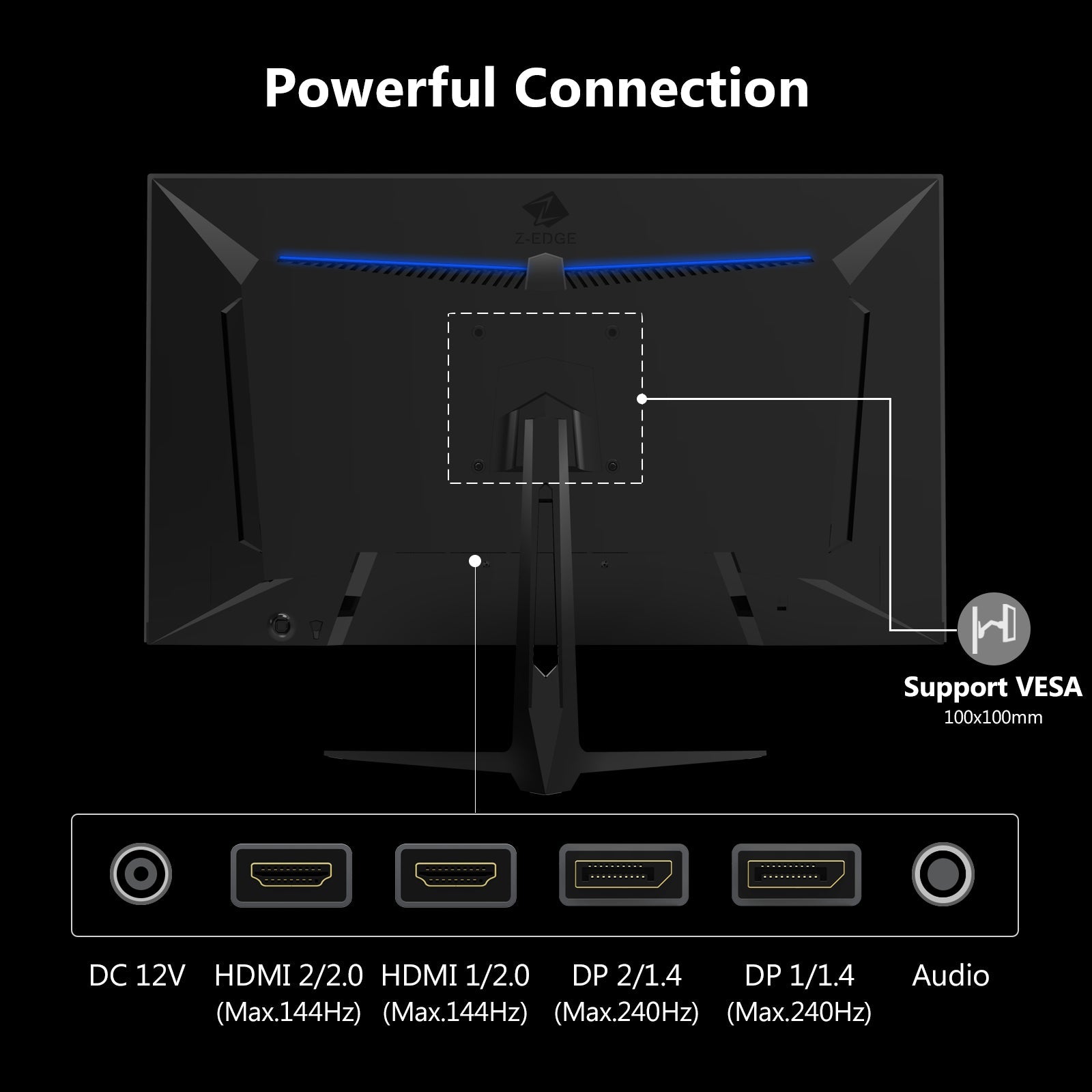 Z-EDGE 27 240Hz 2K IPS Gaming Monitor. QHD(2560x1440) Freesync. HDMl x2. DisplayPort x2