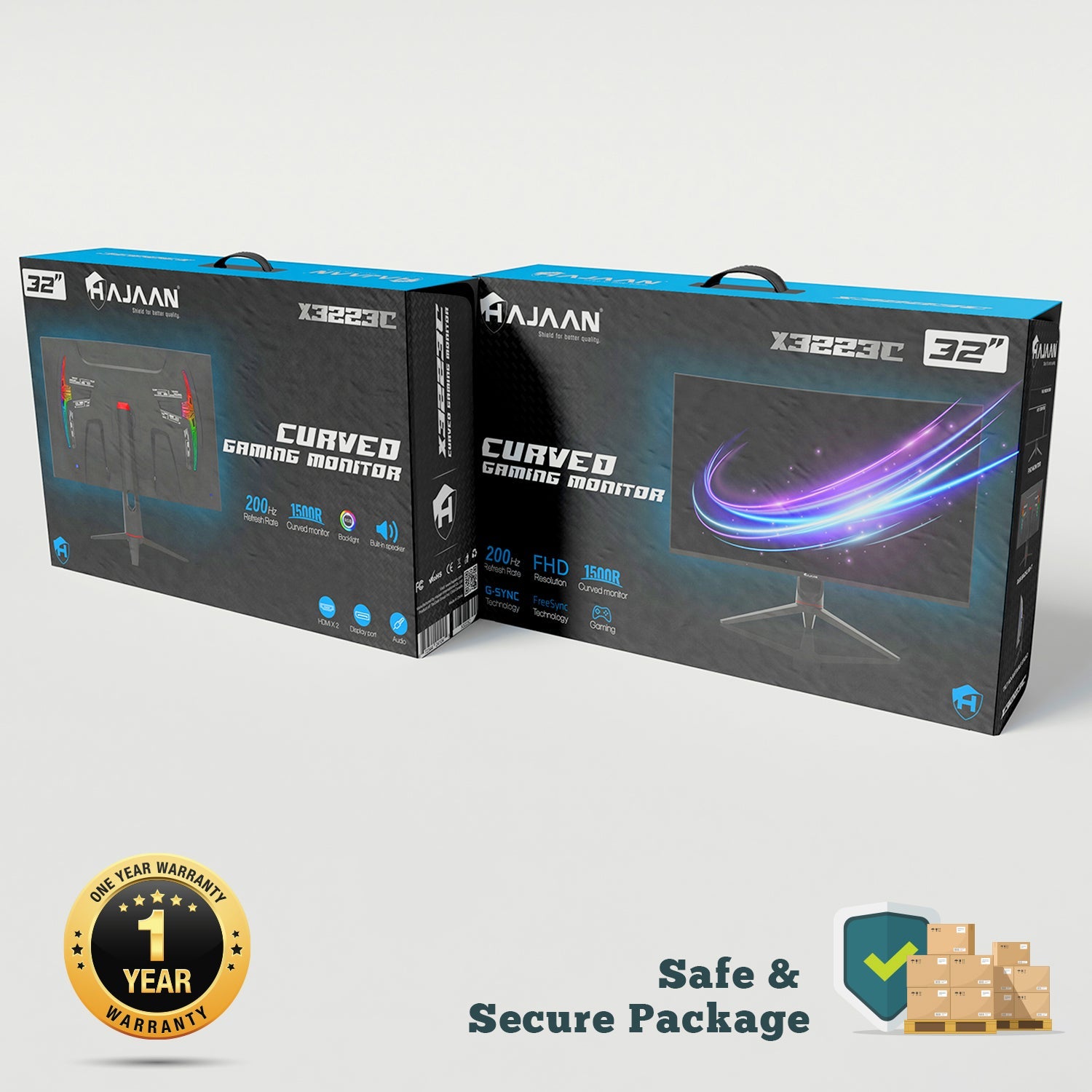 HAJAAN 32 Inch FHD 1080p Curved Gaming Monitor with RGB Lighting 200Hz Refresh Rate with VA Display. Built-in Speakers. Tilt Adjustment. Wall Mountable 2x HDMI. DP (X3223C) - Black