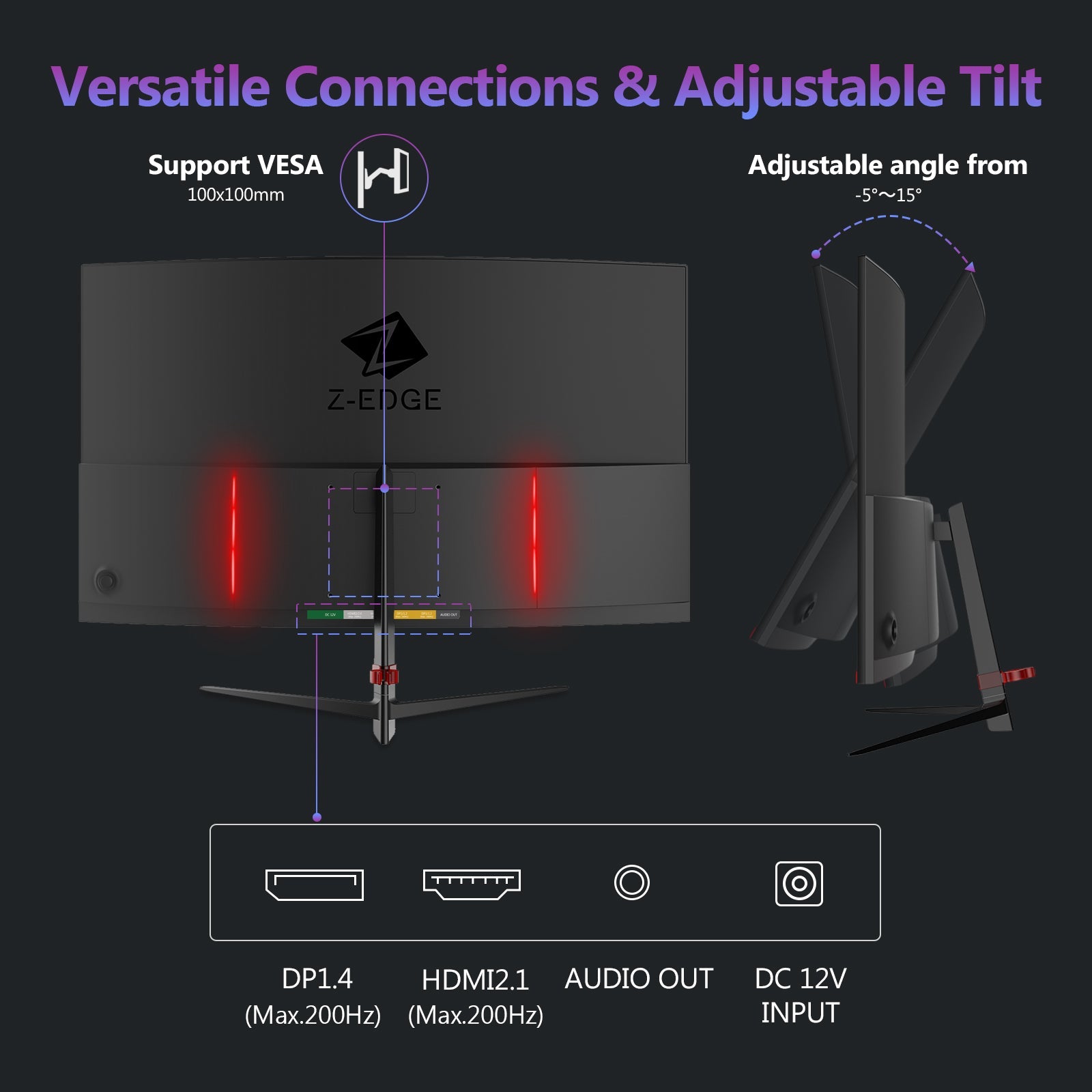 Refurbished: Z-EDGE 27 200Hz Curved Gaming Monitor 1ms Full HD 1080P HDMI & DP Port Support Universal Mount