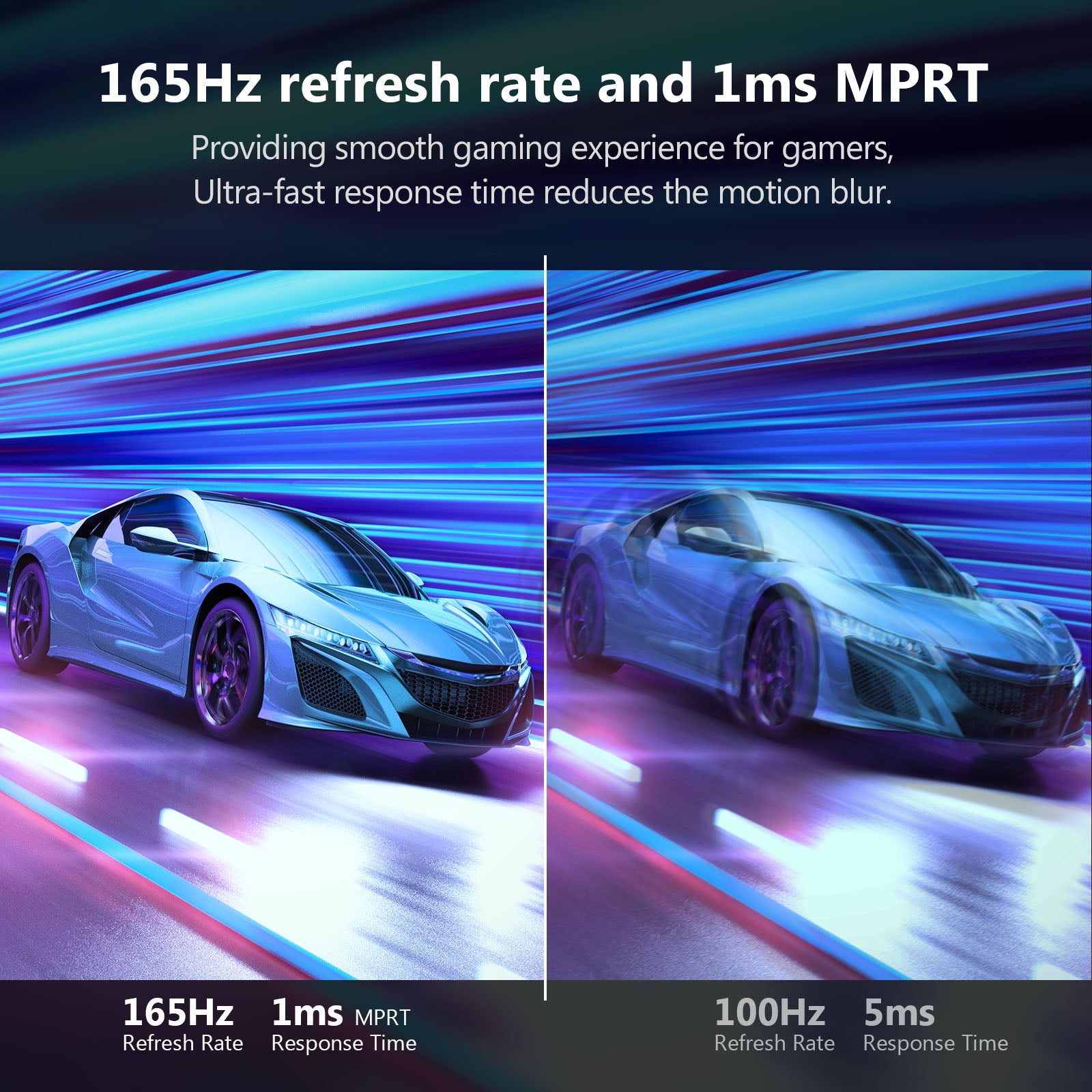Ultrafast 1ms response time avoids streaking. blurring and ghosting. during intense action scenes in video games and movies.